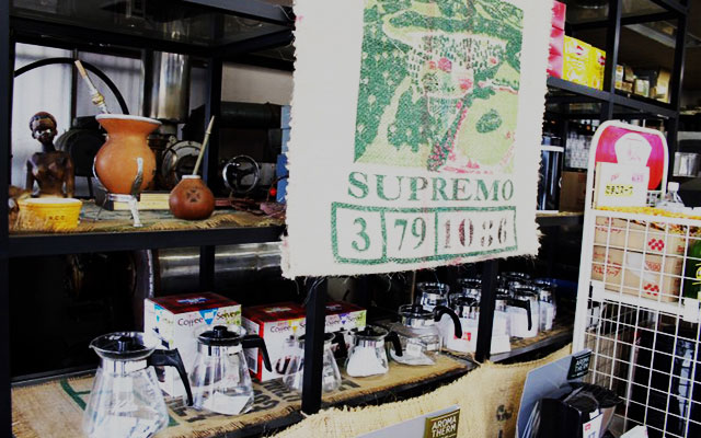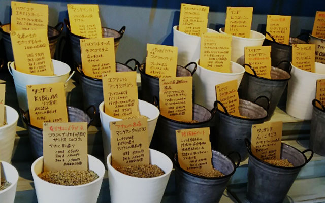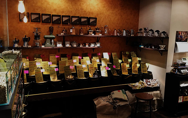 レトロな外観が特徴のなかまち店は、コーヒー道具はもちろん、竹篭は職人の手作りのこだわりがあります。商品説明は大きなボードで書かれているので、店内の良い香りを楽しみながらじっくり種類を選ぶことができます。