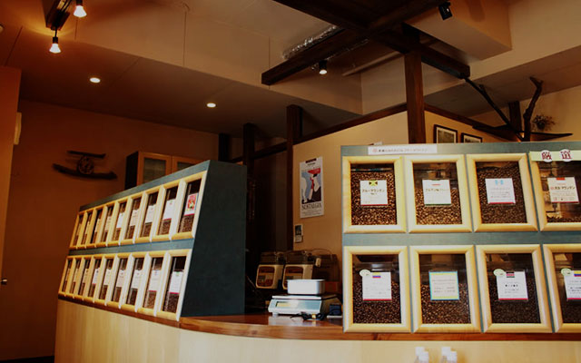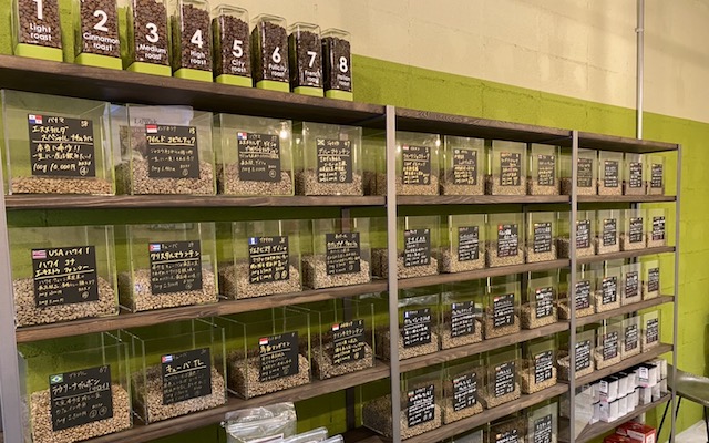 京都にある焙煎所です。ニシナ屋珈琲 随一の品揃えで、世界のあらゆる種類のコーヒー豆を取り揃えました。 その品数は世界一カモしれません。