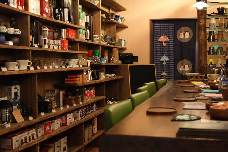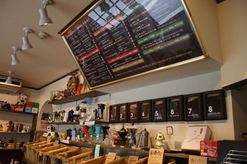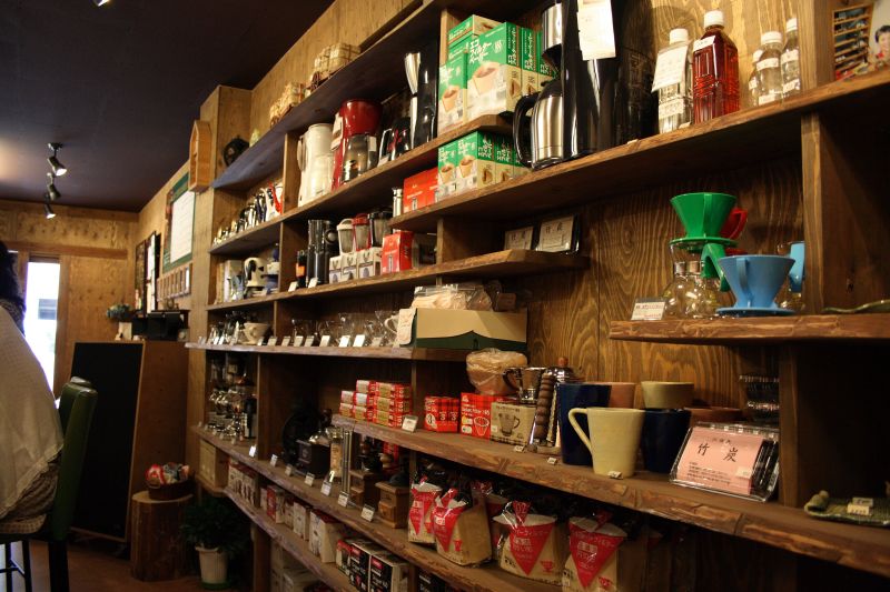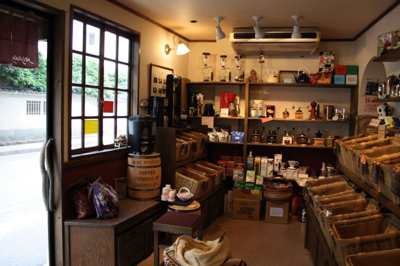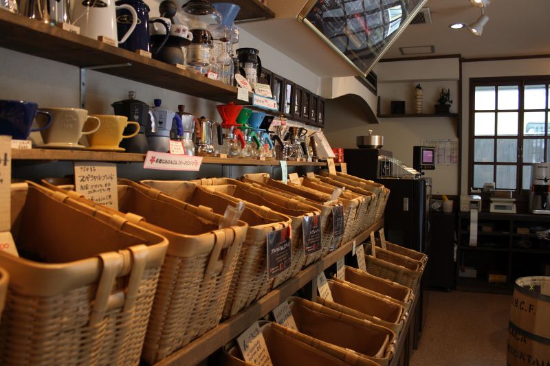 レトロな外観が特徴のなかまち店は、コーヒー道具はもちろん、竹篭は職人の手作りのこだわりがあります。商品説明は大きなボードで書かれているので、店内の良い香りを楽しみながらじっくり種類を選ぶことができます。