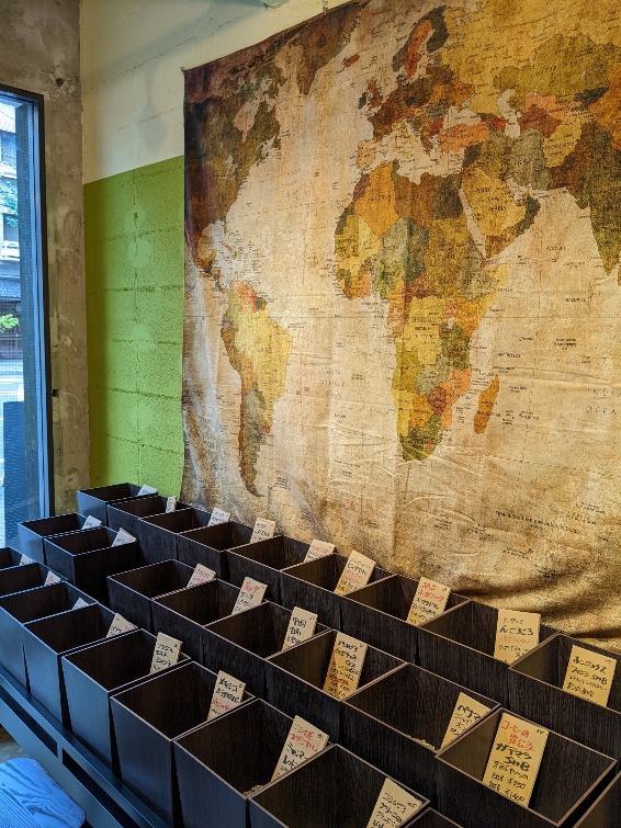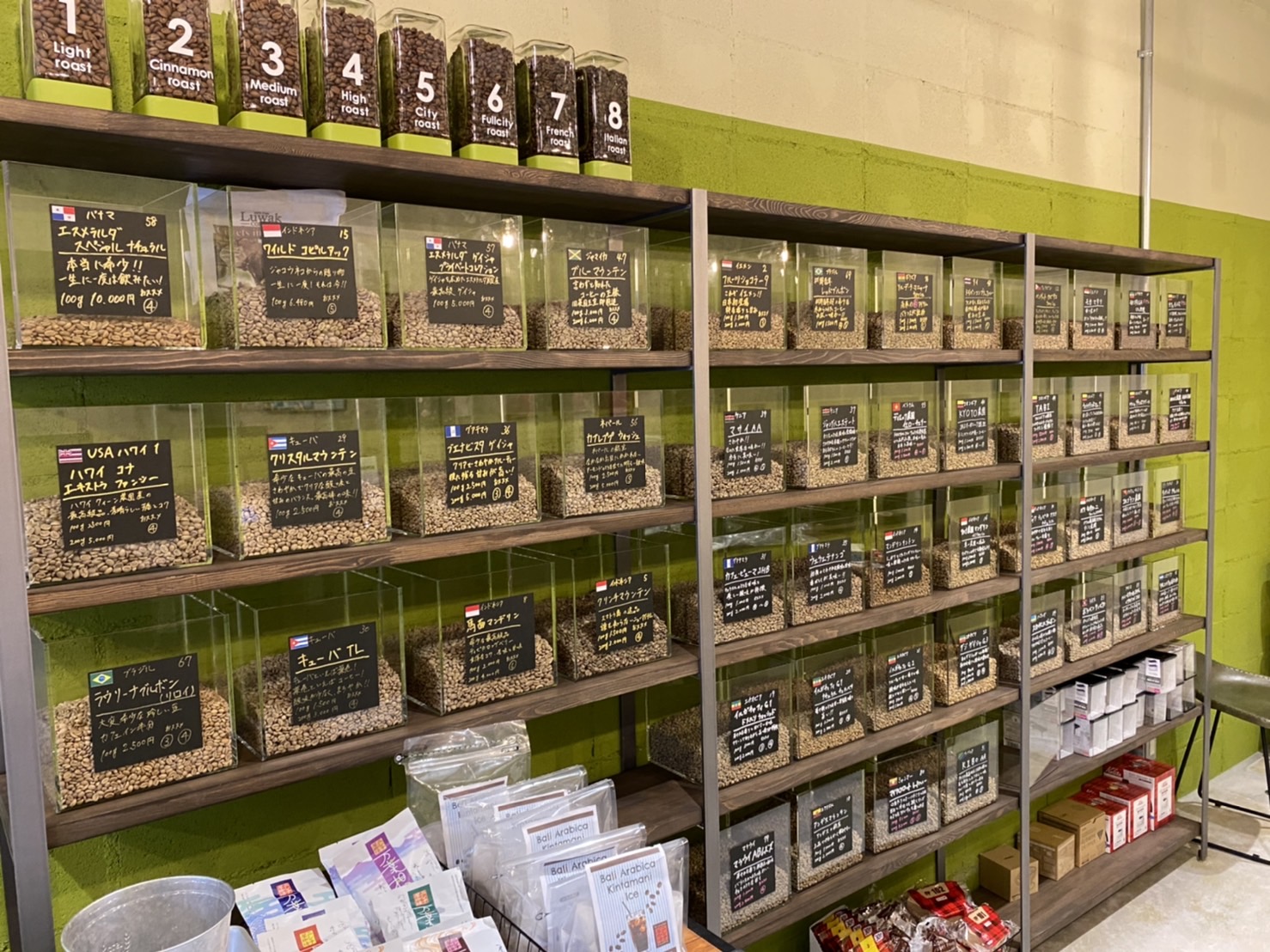 京都にある焙煎所です。ニシナ屋珈琲 随一の品揃えで、世界のあらゆる種類のコーヒー豆を取り揃えました。 その品数は世界一カモしれません。